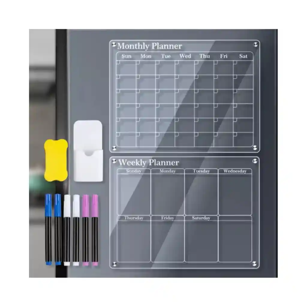 Tablero Acrílico Magnético 30x40cm para Planificación en Nevera Este tablero magnético de planificación es la herramienta perfecta para organizar tu día y mantener todo bajo control. Con un tamaño de 30x40 cm, puedes escribir, borrar y reorganizar tus tareas y notas sin perder detalle. Ideal para colocar en la nevera, te permite tener un acceso fácil y visual a tu planificación diaria. El tablero incluye 4 clips magnéticos para sujetar notas, 5 marcadores borrables para escribir, un soporte magnético para los marcadores y un borrador magnético para limpiar fácilmente lo escrito. Características: • Tamaño: 30 cm x 40 cm • 4 clips magnéticos incluidos • 5 marcadores borrables incluidos • Soporte magnético para los marcadores • Borrador magnético incluido • Fácil de colocar en la nevera • Ideal para planificación diaria y organización
