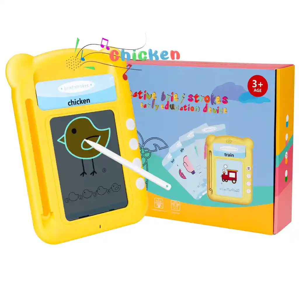 Dispositivo de Aprendizaje Interactivo para Dibujo y Vocabulario en Inglés Este dispositivo de aprendizaje interactivo es una herramienta educativa diseñada para que los niños desarrollen habilidades de dibujo, memoria y lenguaje mientras se divierten. Combina aprendizaje visual y auditivo, permitiendo que los pequeños tracen imágenes y escuchen la pronunciación de palabras en inglés de forma clara. Incluye un lápiz digital y pantalla táctil sensible, que facilitan el trazo y la interacción del niño con el contenido. Al insertar las tarjetas de aprendizaje, el dispositivo reconoce la imagen y reproduce la palabra en inglés, guiando al niño para dibujarla paso a paso. Es ideal para estimular la creatividad, reforzar el vocabulario básico en inglés y promover el aprendizaje autónomo desde temprana edad. Características principales • Pantalla táctil interactiva • Lápiz digital fácil de usar • Pronunciación de palabras en inglés • Guías de dibujo paso a paso • Aprendizaje visual y auditivo • Diseño infantil resistente y seguro Beneficios educativos • Estimula la creatividad y la coordinación mano-ojo • Refuerza la memoria y el reconocimiento de palabras • Apoya el aprendizaje temprano del inglés • Promueve el juego educativo Contenido del paquete • Dispositivo interactivo • Lápiz digital • Tarjetas de aprendizaje ilustradas Uso recomendado Niños en etapa de aprendizaje inicial de vocabulario y dibujo. Garantía Garantía de 30 días por defectos de fábrica. No cubre daños por mal uso, golpes o humedad. Notas • Usar bajo supervisión de un adulto. • Evitar contacto con líquidos.