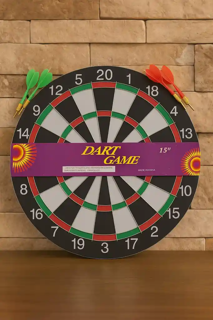 Divertido y clásico juego de dardos ideal para compartir en casa, oficina o reuniones. El tablero tiene un diseño tradicional con numeración clara y colores llamativos, perfecto para practicar la puntería o competir entre amigos. Incluye 6 dardos metálicos (3 rojos y 3 verdes) con punta afilada y cuerpo liviano para un lanzamiento preciso. ✅ Tamaño: 15 pulgadas ✅ Incluye: 6 dardos (3 rojos y 3 verdes) ✅ Material: tablero resistente con base de fibra comprimida y metal ✅ Uso: entretenimiento, competencia o decoración ✅ Instalación: se puede colgar fácilmente en pared o puerta