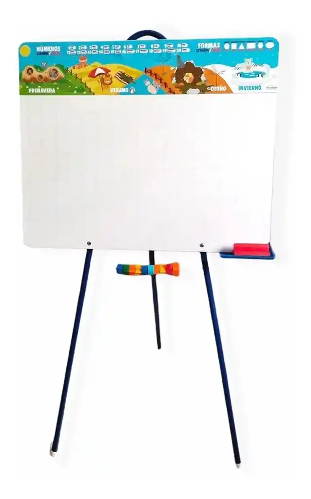 Empaque de regalo sin costo adicional, escríbenos al finalizar la compra. 3 años + Tablero didáctico ideal para aprender de forma interactiva. Incluye superficie blanca cuadriculada para escribir y dibujar con marcador borrable. En la parte superior muestra números, estaciones y formas para apoyar el aprendizaje visual. Cuenta con base que brinda estabilidad y facilita el guardado. Incluye bandeja para marcadores y borrador. Perfecto para desarrollar escritura, dibujo y creatividad en casa o en el aula. Tamaño: 105x 60cm