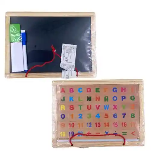 El tablero didáctico es un recurso educativo versátil que combina el aprendizaje con el juego, diseñado para estimular la creatividad, la motricidad fina, el razonamiento lógico y la expresión escrita y gráfica en niños. Es una herramienta interactiva que permite realizar actividades como escritura, dibujo, reconocimiento de letras y números, operaciones matemáticas y más, de manera lúdica y entretenida. Tablero mixto (magnético, de tiza y marcador), con marco de madera y cordón para colgar. Incluye fichas didácticas, 3 tizas, marcador y borrador. Pequeño: 25,2 x 18,5 cm. Área de escritura: 15,6 x 22,9 cm. Incluye fichas magnéticas del abecedario, números, signos matemáticos y tangram.