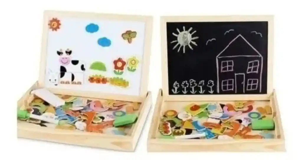increíble Tablero Didáctico 2 En 1 Doble Cara con Fichas Magnéticas! Este tablero es perfecto para que los niños aprendan y se diviertan al mismo tiempo. Con su doble cara, el tablero ofrece dos superficies para que los niños puedan dibujar y escribir con rotuladores especiales incluidos en el paquete. Además, las fichas magnéticas incluidas permiten a los niños crear imágenes y formas en la superficie magnética del tablero. Este tablero didáctico es ideal para mejorar las habilidades motoras finas y la coordinación mano-ojo, así como para fomentar la creatividad y la imaginación de los niños. También es perfecto para actividades de enseñanza, ya que los niños pueden practicar matemáticas, escritura y dibujo en un solo lugar. Descripción Tablero Didáctico Doble Magnético juguete niños aprendizaje • Tablero con múltiples funciones. • Plegable. • Incluye un marcador, un borrador y una caja de tizas. • Incluye mas de 50 piezas magnéticas para armar en el tablero. • Dimensiones del tablero 23cm de alto * 30cm de largo * 3.2cm de alto. • Dimensiones de la caja 23.6cm de alto * 30.9cm de largo * 3.5cm de alto. • Magnético doble faz con estructura resistente. • Superficie se limpia fácilmente
