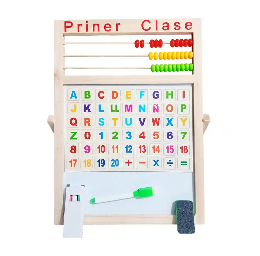Convierte cualquier rincón en un salón de clases y prepara a tu pequeño para el éxito escolar con este completo centro de aprendizaje de madera "Primer Clase". Este tablero didáctico multifuncional lo tiene todo: un ábaco clásico para dar los primeros pasos en las matemáticas, bloques giratorios interactivos para dominar el abecedario y los números, y una práctica pizarra acrílica para desatar la creatividad dibujando o escribiendo las primeras palabras. Fabricado en madera resistente y listo para usar con el marcador y borrador incluidos, es la herramienta todo en uno definitiva para fomentar la curiosidad, la coordinación y el amor por el conocimiento de una forma divertida e interactiva. /// Contenido de la caja: Borrador, tablero, marcador y tiza /// Ficha Técnica: Materiales : Madera - Plástico Dimensiones: 38 cm x 29 cm Edad recomendada : + 3 años en adelante Material suave, cómodo, seguro, no tóxico Certificado de conformidad: SL-CS-210044 Referencia: DM1046 ** _Para defectos de fábrica o retractos: \\_Por favor revise el producto apenas lo reciba y antes de usarlo. No aplican ley de retracto o defectos de fábrica luego de usar el producto. Se manejan máximo 5 días para reportar defectos de fábrica (por ejemplo, producto funciona mal, piezas faltantes, rotas, etc). Para hacer efectiva la devolución el producto debe devolverse con el empaque original, el cual debe estar en buen estado, incluir todos los documentos y las partes completas y sin daños.
