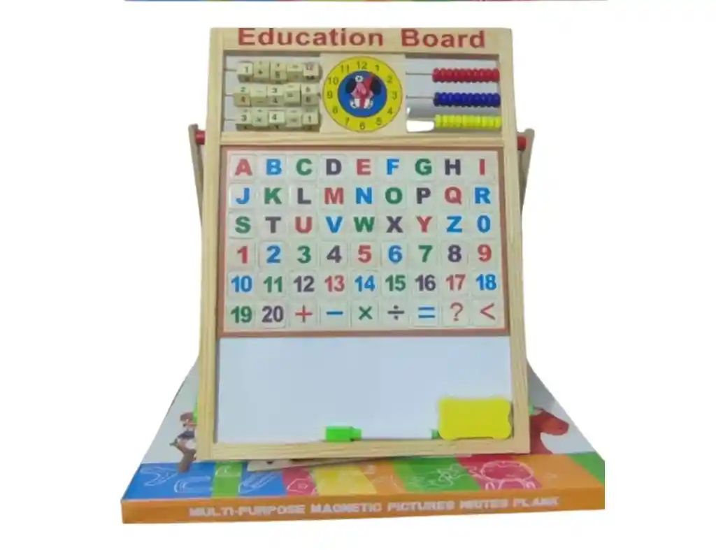 tablero educativo magnético multipropósitoEl tablero educativo magnético multipropósito es una herramienta ideal para el aprendizaje temprano. Combina diferentes superficies y funciones en un solo producto, permitiendo que los niños desarrollen habilidades cognitivas, motrices y creativas mientras se divierten. Generalmente incluye una pizarra blanca magnética, pizarra negra para tiza, letras y números magnéticos, y un soporte estable para colocar en el piso o mesa. Perfecto para jugar, estudiar, repasar tareas, aprender el abecedario, hacer dibujos, practicar escritura y resolver ejercicios. 🌟 BENEFICIOS ✔ Estimula la creatividad: Los niños pueden dibujar, colorear y escribir libremente. ✔ Aprendizaje interactivo: Con letras y números magnéticos practican palabras, sumas, operaciones y reconocimiento de formas. ✔ Desarrollo motriz: Favorece la coordinación mano-ojo y el trazo. ✔ Fomenta hábitos de estudio: Ideal para reforzar tareas y actividades educativas. ✔ Producto 2 en 1: Permite usar tiza o marcadores tipo borrable según la superficie.✔ Material seguro y duradero: Tablero resistente con bordes seguros para niños. 🧼✨ CUIDADOS DEL PRODUCTO 🔹 Limpiar la pizarra blanca con paño seco o borrador específico para marcador borrable. 🔹 No usar marcadores permanentes sobre la superficie blanca. 🔹 Para la pizarra negra, usar solo tiza. Limpiar con paño húmedo y dejar secar bien. 🔹 Mantener las piezas magnéticas libres de polvo para evitar deterioro del imán. 🔹 No exponer el tablero a golpes fuertes ni humedad prolongada. 🔹 Guardar las piezas pequeñas fuera del alcance de niños muy pequeños. 🔹 Evitar colocar objetos pesados encima del tablero para no deformarlo.PRODUCTO IMPORTADO