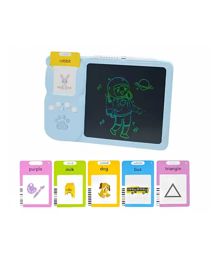 ¡Aprender jugando nunca fue tan divertido! Este dispositivo educativo es ideal para niños en etapa preescolar. Combina imágenes, sonidos y escritura en una tableta interactiva, ideal para reforzar vocabulario en español e inglés. ✨ Características principales: 🐨 Marca: Koala 🗣 Audio interactivo: reconoce tarjetas y pronuncia palabras. 🌐 Bilingüe: español e inglés. 🃏 Tarjetas educativas con imágenes de animales, objetos, letras, etc. 🎨 Pantalla tipo tablet para dibujar o trazar. 🔁 Recargable por USB – no usa pilas. 📦 Incluye: dispositivo, tarjetas, cable de carga y guía de uso. Beneficios: Estimula el aprendizaje auditivo y visual. Refuerza vocabulario desde temprana edad. Ideal para juegos didácticos en casa o jardín.