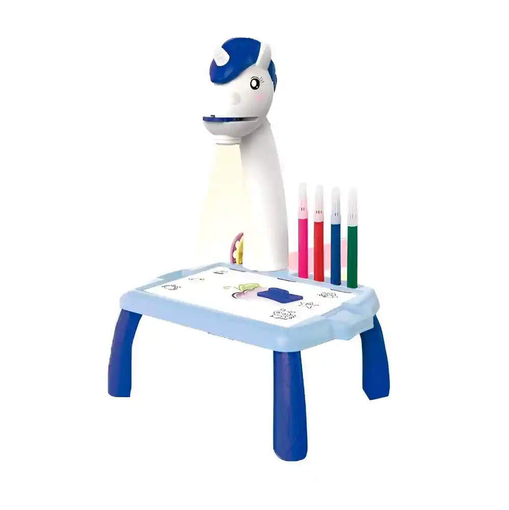 Este encantador tablero pizarra permite a los niños explorar su creatividad dibujando y jugando, mientras un proyector con forma de unicornio mágico proyecta imágenes para que puedan calcar y aprender con facilidad. Diseñado para estimular la imaginación y desarrollar la motricidad fina, este tablero es la herramienta perfecta para que los pequeños artistas practiquen sus habilidades de dibujo de manera divertida e interactiva, creando un mundo de posibilidades en cada trazo. Ficha Técnica: Material: Plástico ABS No toxico Dimensiones del empaque: 35 cm x 30 cm x 7 cm Edad recomendada: + 3 años Dimensiones del tablero: 19 cm x 15 cm Referencia: TK9813 MODELO 2022-6 Certificado de conformidad: CS-LCO-13233-2021S2/432 ** _Para defectos de fábrica o retractos: \_Por favor revise el producto apenas lo reciba y antes de usarlo. No aplican ley de retracto o defectos de fábrica luego de usar el producto. Se manejan máximo 5 días para reportar defectos de fábrica (por ejemplo, producto funciona mal, piezas faltantes, rotas, etc). Para hacer efectiva la devolución el producto debe devolverse con el empaque original, el cual debe estar en buen estado, incluir todos los documentos y las partes completas y sin daños.