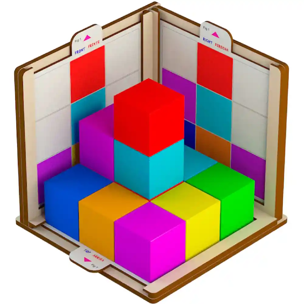 - Contenido: 18 cubos plásticos de 5 x 5 x 5 cm. cada uno. 15 tabletas en madera MDF de 18.5 x 16.3 x 0.3 cm Empaque: Caja de cartón de 25 x 25 x 10 cm.