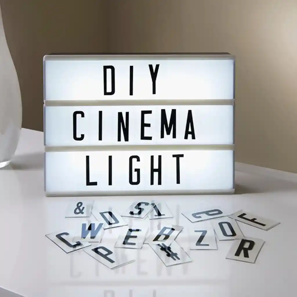¿QUÉ BENEFICIOS TIENE EL TABLERO LED CON LETRAS? Ilumínate y muestra tu creatividad con este bonito tablero con letras intercambiables que se ponen en las ranuras de la parte frontal de la caja de luz para crear palabras y frases imaginativas que decoran con un estilo vintage cualquier lugar. CARACTERÍSTICAS . Ligero y cómodo de llevar . Es respetuoso con el medio ambiente y suave en los ojos. . No solo es una decoración, también se puede utilizar como lámpara de cama para iluminación . Amplia aplicación, perfecta para dormitorio, pasillo, fiesta, boda, decoración festiva, etc. . Alimentado por 6 x AA batería (no incluidas) Lista de embalaje CONTENIDO 1 Tablero led 91 tarjetas
