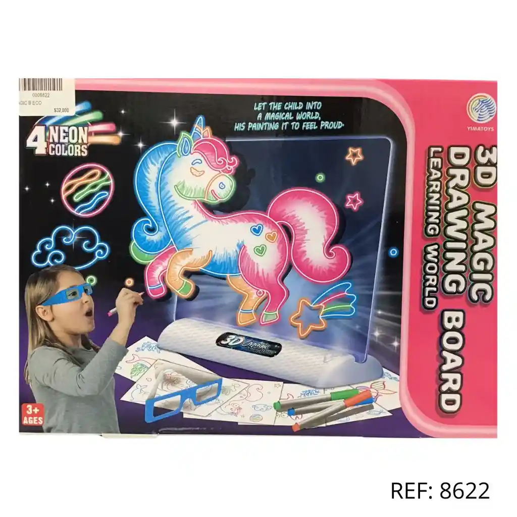 Tablero acrílico con luz para dibujar en 3D, ideal para crear diseños creativos y coloridos.