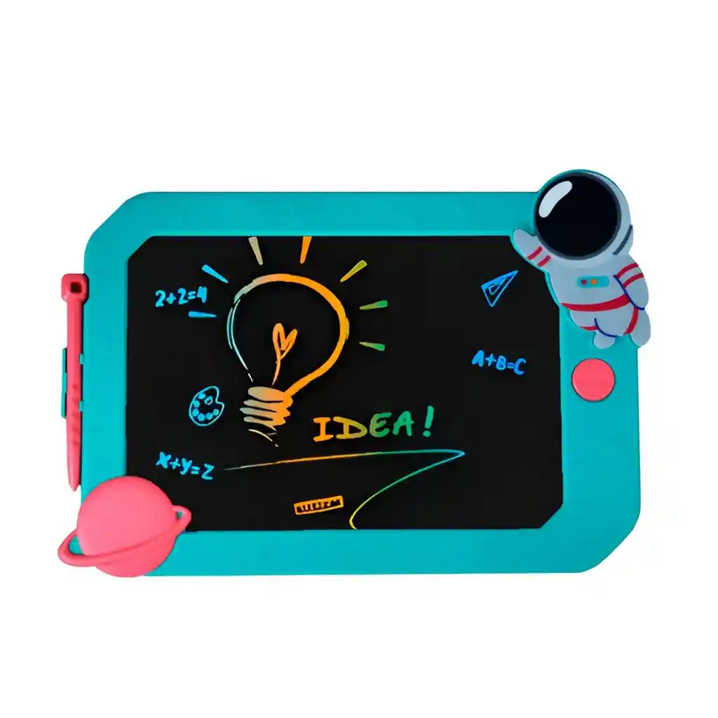 Divertida tableta mágica con diseño de astronauta que incluye un lápiz para que los niños puedan escribir o dibujar lo que deseen, estimulando su creatividad y coordinación; en la parte superior, justo en la boca del personaje, cuenta con un botón especial para borrar fácilmente lo escrito y comenzar de nuevo, mientras que en la parte trasera dispone de un interruptor que permite bloquear o desbloquear el dibujo para evitar que se borre accidentalmente, ofreciendo una experiencia práctica, segura y llena de diversión educativa. // El producto incluye batería // Ficha Técnica: Materiales : Plástico ABS Dimensiones: 28 cm x 19 cm x 0,5 cm Edad recomendada : + 3 años en adelante Material suave, cómodo, seguro, no tóxico Certificado de conformidad: SL-CS-210044 Referencia: WZ-8088 Términos de garantía: Para defectos de fábrica o retractos: Por favor revise el producto apenas lo reciba y antes de usarlo. No aplican ley de retracto o defectos de fábrica luego de usar el producto. Se manejan máximo 5 días para reportar defectos de fábrica (por ejemplo, producto funciona mal, piezas faltantes, rotas, etc). Para hacer efectiva la devolución el producto debe devolverse con el empaque original, el cual debe estar en buen estado, incluir todos los documentos y las partes completas y sin daños.