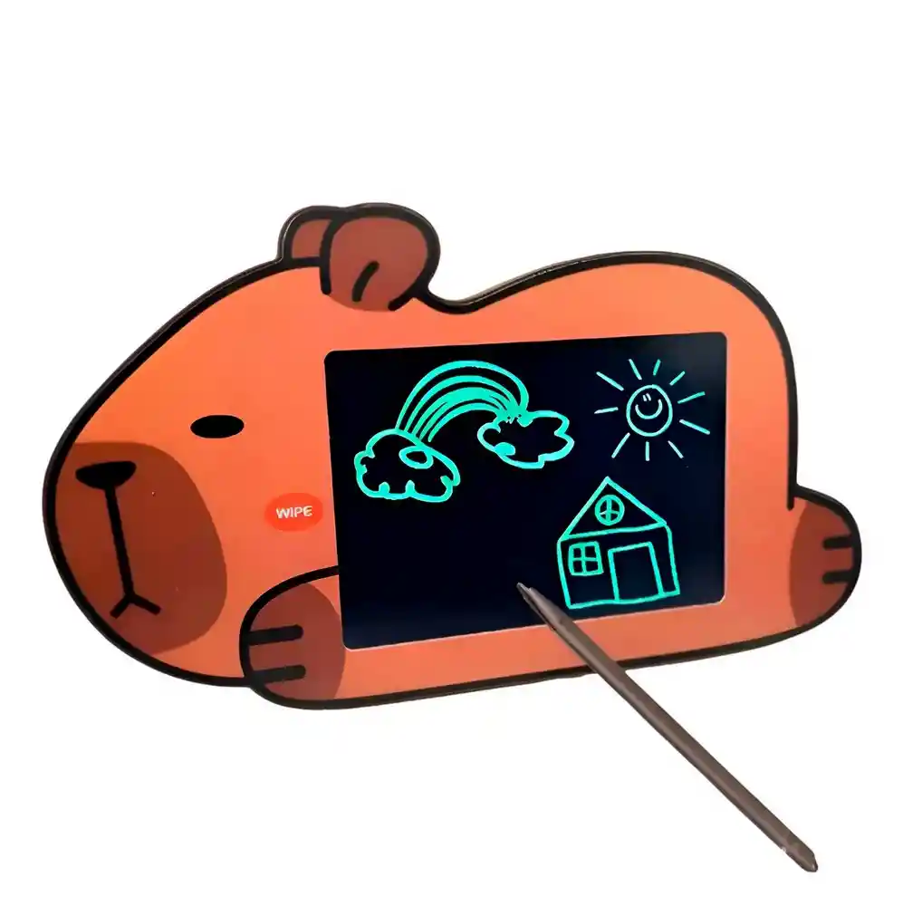 La tableta de escritura LCD con diseño de capibara es perfecta para que los niños dibujen, escriban y aprendan de forma divertida y ecológica. Su pantalla colorida permite crear trazos brillantes sin usar papel ni tinta, y con solo presionar un botón se borra todo al instante, lista para nuevas creaciones una y otra vez. // El producto incluye batería // Ficha Técnica: Materiales : Plástico ABS Dimensiones: 35 cm x 20 cm x 0,5 cm Edad recomendada : + 3 años en adelante Material suave, cómodo, seguro, no tóxico Certificado de conformidad: SL-CS-210044 Referencia: JM-1392 XL-8097 Términos de garantía: Para defectos de fábrica o retractos: Por favor revise el producto apenas lo reciba y antes de usarlo. No aplican ley de retracto o defectos de fábrica luego de usar el producto. Se manejan máximo 5 días para reportar defectos de fábrica (por ejemplo, producto funciona mal, piezas faltantes, rotas, etc). Para hacer efectiva la devolución el producto debe devolverse con el empaque original, el cual debe estar en buen estado, incluir todos los documentos y las partes completas y sin daños.