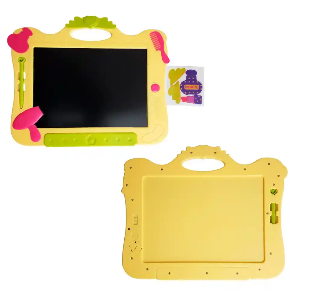 Divertida tableta mágica con diseño infantil que incluye un lápiz para que los niños puedan escribir o dibujar lo que deseen, fomentando su creatividad y coordinación; en la parte superior, justo en la boca del personaje, cuenta con un botón especial para borrar fácilmente lo escrito y comenzar de nuevo, mientras que en la parte trasera dispone de un interruptor que permite bloquear o desbloquear el dibujo para evitar que se borre accidentalmente, ofreciendo así una experiencia práctica, segura y llena de diversión educativa. // El producto incluye batería // Ficha Técnica: Materiales : Plástico ABS Dimensiones: 31 cm x 25 cm x 0,5 cm Edad recomendada : + 3 años en adelante Material suave, cómodo, seguro, no tóxico Certificado de conformidad: SL-CS-210044 Referencia: WZ-8084 Términos de garantía: Para defectos de fábrica o retractos: Por favor revise el producto apenas lo reciba y antes de usarlo. No aplican ley de retracto o defectos de fábrica luego de usar el producto. Se manejan máximo 5 días para reportar defectos de fábrica (por ejemplo, producto funciona mal, piezas faltantes, rotas, etc). Para hacer efectiva la devolución el producto debe devolverse con el empaque original, el cual debe estar en buen estado, incluir todos los documentos y las partes completas y sin daños.