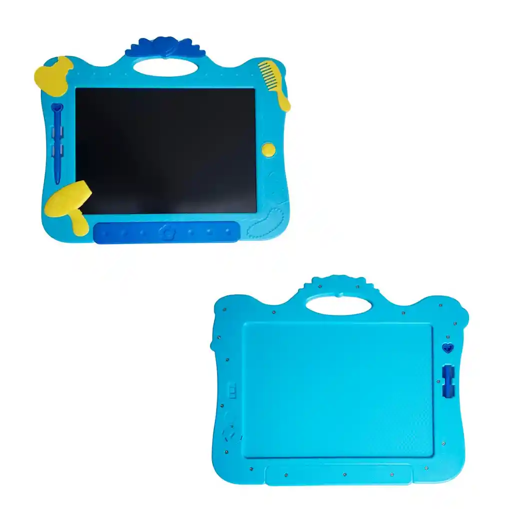 Divertida tableta mágica con diseño infantil que incluye un lápiz para que los niños puedan escribir o dibujar lo que deseen, fomentando su creatividad y coordinación; en la parte superior, justo en la boca del personaje, cuenta con un botón especial para borrar fácilmente lo escrito y comenzar de nuevo, mientras que en la parte trasera dispone de un interruptor que permite bloquear o desbloquear el dibujo para evitar que se borre accidentalmente, ofreciendo así una experiencia práctica, segura y llena de diversión educativa. // El producto incluye batería // Ficha Técnica: Materiales : Plástico ABS Dimensiones: 31 cm x 25 cm x 0,5 cm Edad recomendada : + 3 años en adelante Material suave, cómodo, seguro, no tóxico Certificado de conformidad: SL-CS-210044 Referencia: WZ-8084 Términos de garantía: Para defectos de fábrica o retractos: Por favor revise el producto apenas lo reciba y antes de usarlo. No aplican ley de retracto o defectos de fábrica luego de usar el producto. Se manejan máximo 5 días para reportar defectos de fábrica (por ejemplo, producto funciona mal, piezas faltantes, rotas, etc). Para hacer efectiva la devolución el producto debe devolverse con el empaque original, el cual debe estar en buen estado, incluir todos los documentos y las partes completas y sin daños.