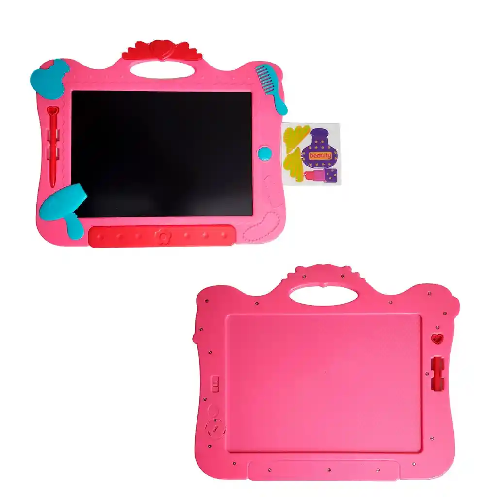 Divertida tableta mágica con diseño infantil que incluye un lápiz para que los niños puedan escribir o dibujar lo que deseen, fomentando su creatividad y coordinación; en la parte superior, justo en la boca del personaje, cuenta con un botón especial para borrar fácilmente lo escrito y comenzar de nuevo, mientras que en la parte trasera dispone de un interruptor que permite bloquear o desbloquear el dibujo para evitar que se borre accidentalmente, ofreciendo así una experiencia práctica, segura y llena de diversión educativa. // El producto incluye batería // Ficha Técnica: Materiales : Plástico ABS Dimensiones: 31 cm x 25 cm x 0,5 cm Edad recomendada : + 3 años en adelante Material suave, cómodo, seguro, no tóxico Certificado de conformidad: SL-CS-210044 Referencia: WZ-8084 Términos de garantía: Para defectos de fábrica o retractos: Por favor revise el producto apenas lo reciba y antes de usarlo. No aplican ley de retracto o defectos de fábrica luego de usar el producto. Se manejan máximo 5 días para reportar defectos de fábrica (por ejemplo, producto funciona mal, piezas faltantes, rotas, etc). Para hacer efectiva la devolución el producto debe devolverse con el empaque original, el cual debe estar en buen estado, incluir todos los documentos y las partes completas y sin daños.