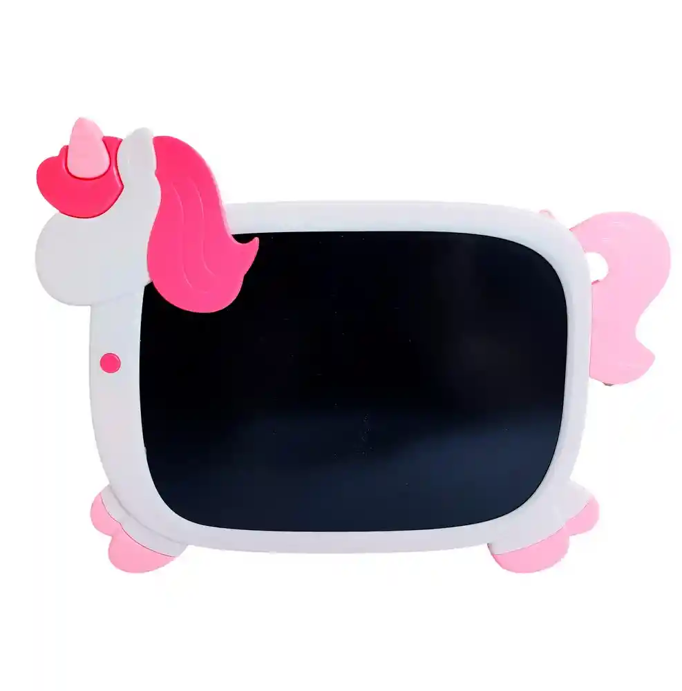 Divertida tableta LCD de unicornio, ideal para dibujar, escribir o practicar operaciones de forma creativa y ecológica. Su diseño colorido y forma de unicornio la hace perfecta para niños, fomentando la imaginación y el aprendizaje mientras se divierten. Incluye lápiz integrado y función de borrado con un solo botón. Ligera, resistente y reutilizable, es perfecta para llevar a cualquier lugar y usar en casa, el colegio o de viaje. // El producto incluye batería // Ficha Técnica: Materiales : Plástico ABS Dimensiones: 31 cm x 23 cm x 0,5 cm Edad recomendada : + 3 años en adelante Material suave, cómodo, seguro, no tóxico Certificado de conformidad: SL-CS-210044 Referencia: JM-1379 XL-8059 Términos de garantía: Para defectos de fábrica o retractos: Por favor revise el producto apenas lo reciba y antes de usarlo. No aplican ley de retracto o defectos de fábrica luego de usar el producto. Se manejan máximo 5 días para reportar defectos de fábrica (por ejemplo, producto funciona mal, piezas faltantes, rotas, etc). Para hacer efectiva la devolución el producto debe devolverse con el empaque original, el cual debe estar en buen estado, incluir todos los documentos y las partes completas y sin daños.