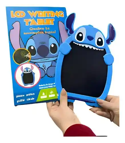 Tableta de dibujo LCD infantil con diseño de Stitch ideal para niños creativos que disfrutan dibujar y escribir pantalla a color que se borra fácilmente con un solo botón fomenta la creatividad sin usar papel ni lápices incluye lápiz digital tamaño portátil perfecta para llevar en viajes o al colegio fabricada con materiales resistentes y seguros para los más pequeños herramienta educativa divertida ecológica y reutilizable ideal para regalar a niños y niñas Características del Producto: Materiales de Alta Calidad: Fabricada con una combinación de LCD y ABS, esta pizarra es duradera y ligera, perfecta para llevar a cualquier lugar. Superficie Reutilizable: La pizarra permite borrar y reutilizarla tantas veces como desees, promoviendo un uso sostenible y reduciendo el desperdicio de papel. Diseño Divertido: Con un atractivo diseño de Stitch, esta pizarra añade un toque de color y alegría a tu espacio de trabajo o estudio. Fácil de Usar: Simplemente escribe tus notas o dibujos y, cuando necesites borrar, utiliza el botón de eliminación. ¡Así de sencillo!