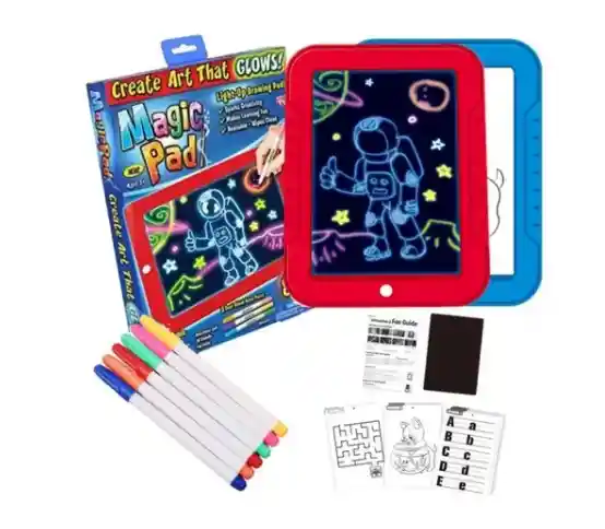 1 tablero mágico luminoso creatividad niños marcadores La pantalla única de Magic Pad es clara, pero una vez que dibujas o escribes, tu arte brillará súper brillante de día o de noche. El secreto son las luces LED de explosión de color con ciencia de pantalla iluminada, por lo que puede esbozarlas, dibujarlas o escribirlas, presiona el botón para que todo brille! Hay 8 efectos de luz diferentes. Luego, límpialo y comienza de nuevo. Magic Pad es perfecto para viajes largos por carretera. Hace que el aprendizaje sea divertido y estimula la creatividad.