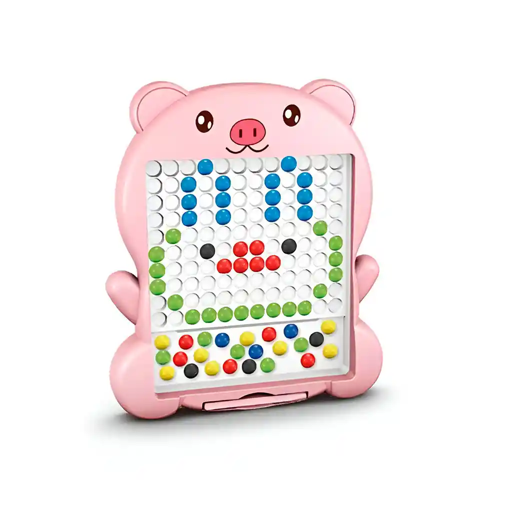 Este encantador tablero magnético es un juego creativo ideal para niñas y niños a partir de 3 años, que permite formar coloridas figuras siguiendo plantillas incluidas o dejar volar la imaginación. Utilizando un lápiz magnético, los pequeños insertan bolitas de colores en los espacios del tablero, desarrollando su motricidad fina, coordinación ojo-mano y reconocimiento de colores y patrones. Compacto y fácil de usar, es perfecto para el juego educativo en casa o durante viajes. Ficha Técnica: Material: Plástico ABS Dimensiones : 25 cm x 20 cm x 2 cm Apto para niños de 3 años en adelante. Referencia: JU1243 Certificado de conformidad: SL-CS-210044 ** _Para defectos de fábrica o retractos: \_Por favor revise el producto apenas lo reciba y antes de usarlo. No aplican ley de retracto o defectos de fábrica luego de usar el producto. Se manejan máximo 5 días para reportar defectos de fábrica (por ejemplo, producto funciona mal, piezas faltantes, rotas, etc). Para hacer efectiva la devolución el producto debe devolverse con el empaque original, el cual debe estar en buen estado, incluir todos los documentos y las partes completas y sin daños.