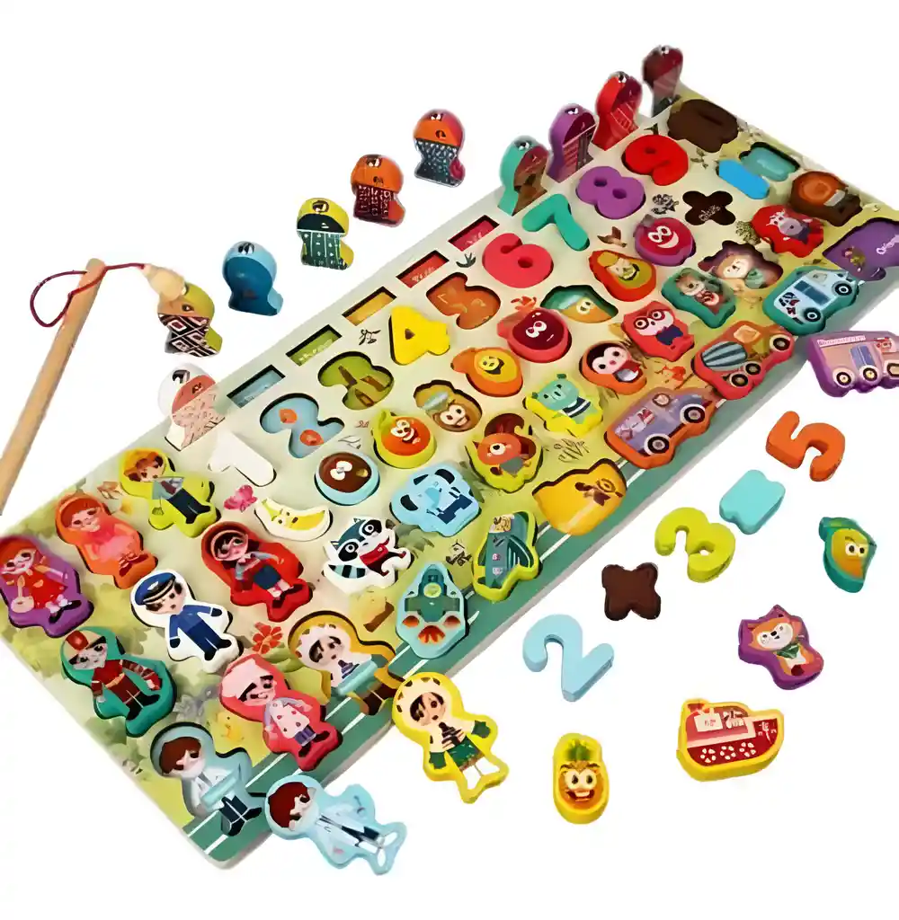 Este juego de tablero Montessori en madera es una herramienta educativa completa y versátil que introduce a los niños al aprendizaje de forma lúdica y creativa. Con actividades de clasificación y apilamiento, incluye bloques de diversas temáticas, como profesiones, juegos de pesca, números, transporte, suma y resta, frutas y figuras espaciales. Los niños pueden explorar colores, formas y cantidades mientras desarrollan habilidades de reconocimiento, motricidad y lógica. Este tablero inspira creatividad y aprendizaje integral, ofreciendo una experiencia educativa rica en descubrimientos y combinaciones divertidas. Ficha Técnica: Dimensiones: 44 cm x 16 cm x 2 cm Material: Madera Edad recomendada: + 3 años Referencia: C4079 Certificado de conformidad: E5-0359-2021 Términos de garantía: Para defectos de fábrica o retractos: Por favor revise el producto apenas lo reciba y antes de usarlo. No aplican ley de retracto o defectos de fábrica luego de usar el producto. Se manejan máximo 5 días para reportar defectos de fábrica (por ejemplo, producto funciona mal, piezas faltantes, rotas, etc). Para hacer efectiva la devolución el producto debe devolverse con el empaque original, el cual debe estar en buen estado, incluir todos los documentos y las partes completas y sin daños.