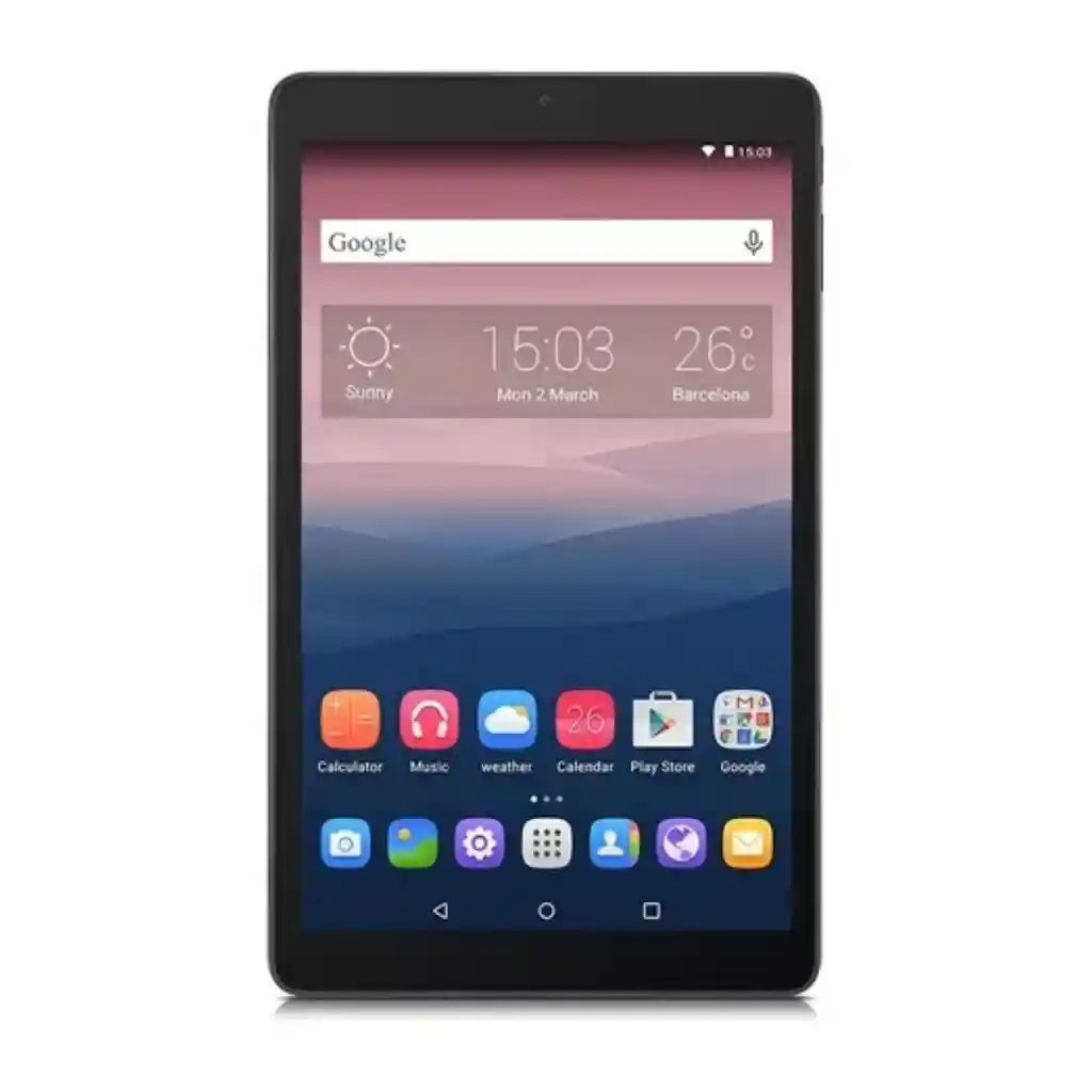 Tablet Alcatel Pixi 4 con pantalla TFT de 7 pulgadas, procesador Quad-Core de 1.3GHz, memoria RAM de 1GB, almacenamiento interno de 8GB expandible mediante microSD, sistema operativo Android 6.0 Marshmallow, conectividad Wi-Fi para navegación rápida, cámara trasera de 2MP y frontal de 0.3MP, diseño delgado y portátil, ideal para lectura, navegación, redes sociales y entretenimiento ligero.