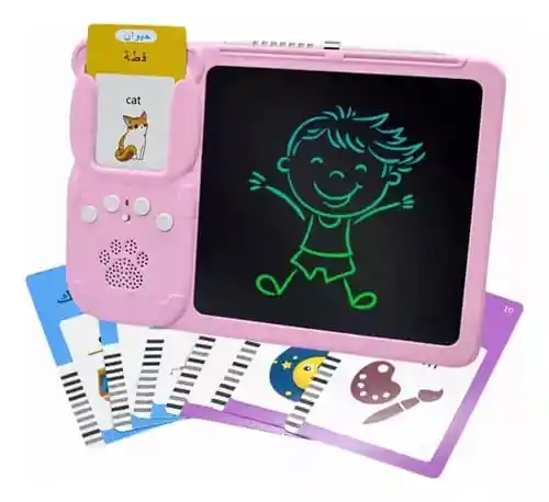 Aplicaciones y Beneficios * Educación Bilingüe: Enseña inglés y español con categorías como animales, objetos, emociones, acciones, días de la semana y más. * Interacción Dinámica: Las tarjetas son reconocidas al insertarlas, activando sonidos y dibujos que refuerzan la asociación visual y auditiva. * Desarrollo Creativo: Los niños pueden dibujar en la pantalla LCD, estimulando la creatividad mientras aprenden. * Material Resistente: Hecha con plástico ABS duradero y seguro para los niños. * Fácil Portabilidad: Ideal para usar en casa o llevar de viaje. Especificaciones * Dimensiones: Tableta: 24 cm x 17 cm x 4 cm. Tarjetas: 8 cm x 5 cm. * Material: Plástico ABS de alta resistencia. * Pantalla: LCD a color para dibujos claros y vivos. * Idiomas: Español e inglés. * Energía: Alimentada por cable USB * Edad Recomendada: Niños de 3 años en adelante.