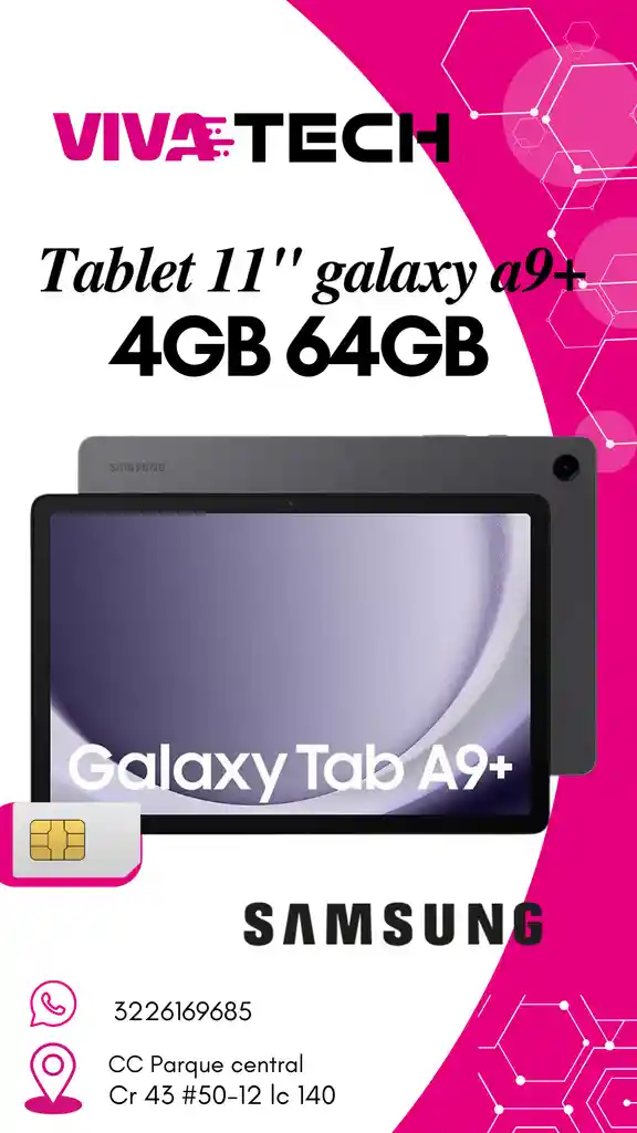 Procesador Velocidad de la CPU Qualcomm Snapdragon 695 2.2GHz, 1.8GHz Tipo CPU Octa-Core Pantalla Tamaño (Pantalla principal) 11.0" (278.2mm) Resolución (Pantalla principal) 1920 x 1200 (WUXGA) Tecnología (Pantalla principal) TFT Intensidad de color (Pantalla principal) 16M Cámara Cámara Principal - Resolución 8.0 MP Cámara principal - Auto focus Sí Cámara Frontal- Resolución 5.0 MP Cámara Principal - Flash No Resolución de grabación de video FHD (1920 x 1080) @30fps Almacenamiento/Memoria Memoria_(GB) 4 Almacenamiento (GB) 64 Almacenamiento disponible (GB) 44.8 Soporte de almacenamiento externo MicroSD (Hasta 1TB) Red / Plataforma 2G GSM GSM850, GSM900, DCS1800, PCS1900 3G UMTS B1(2100), B2(1900), B4 (AWS), B5 (850), B8 (900) 4G FDD LTE B1(2100), B2(1900), B3 (1800), B4(AWS), B5(850), B7(2600), B8(900), B12(700), B13(700), B17(700), B20(800), B26(850), B28(700), B66(AWS-3) 4G TDD LTE B38(2600), B40(2300), B41(2500) Conectividad USB Versión USB 2.0 Tecnología de localización GPS, Glonass, Beidou, Galileo, QZSS Audífono 3.5mm estéreo MHL No Wi-Fi 802.11 a/b/g/n/ac 2.4G+5GHz, VHT80 Wi-Fi Directo Sí Versión Bluetooth Bluetooth v5.1 NFC No Perfiles Bluetooth A2DP, AVRCP, DI, HFP, HID, HOGP, HSP, MAP, OPP, PAN, PBAP PC Sync. Smart Switch (Version PC) OS Android Información general Factor de forma Tablet Sensores Acelerómetro, Sensor giroscópico, Sensor geomagnético, Hall Sensor, Sensor de luz Especificaciones físicas Dimensiones (LxAxP, mm) 168.7 x 257.1 x 6.9 Peso (g) 491 Batería Capacidad de la batería (mAh, Typical) 7040 Removible No Audio y video Formatos de reproducción de video MP4, M4V, 3GP, 3G2, AVI, FLV, MKV, WEBM Resolución de reproducción de video FHD (1920 x 1080) @60fps Formato de reproducción de audio MP3, M4A, 3GA, AAC, OGG, OGA, WAV, AMR, AWB, FLAC, MID, MIDI, XMF, MXMF, IMY, RTTTL, RTX, OTA
