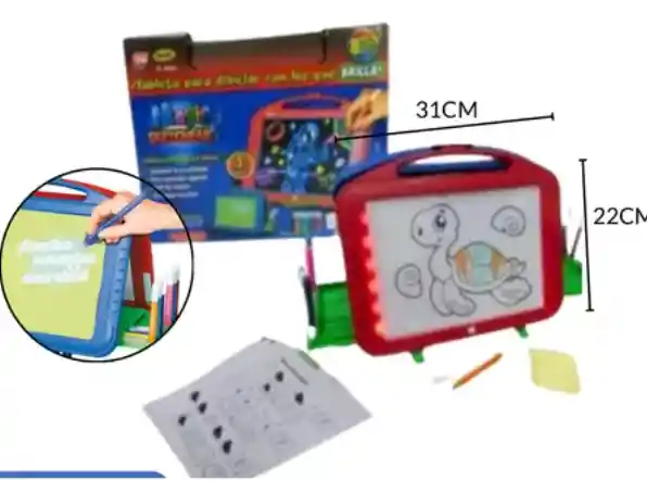 "Bienvenidos a GENUINOS SHOP Tecnología del futuro" ¡Somos expertos en los mejores artículos de tecnología, belleza y hogar con amplia trayectoria y calidad garantizada! DESCRIPCION DEL PRODUCTO La tableta es multifuncional En un lado de la pizarra hay una ventana de plástico transparente tras la que se puede deslizar una de las 42 imágenes. Juegos: adivinanzas, laberintos, completar el dibujo, etc. Una vez dibujado el dibujo, se puede iluminar en la oscuridad mediante LEDs de colores azul, rojo, verde o RGB alternados En la otra cara hay un inserto fluorescente en el que se pueden dibujar dibujos invisibles con un rotulador mágico especial. Tras activar el rotulador con un botón, podemos leer nuestro dibujo invisible o texto escrito. El set está equipado con cajones/organizador funcionales en los que se pueden guardar los rotuladores. IMPORTANTE Para poder tener una buena experiencia en tu compra, te recomendamos que leas detalladamente las siguientes recomendaciones: • Lee completamente la descripción del producto. • Revisa muy bien que sea el producto que necesitas para evitar devoluciones. Garantía del vendedor: 30 días