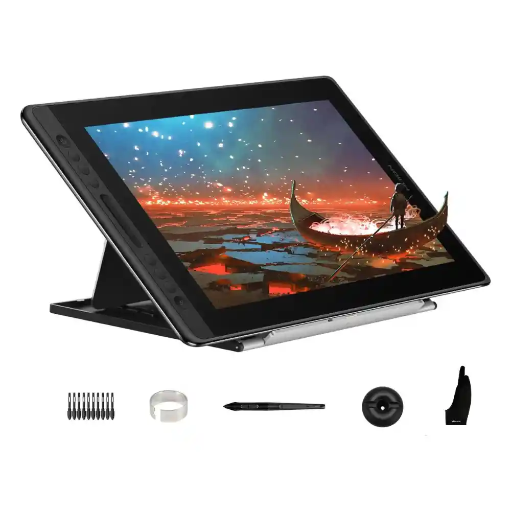 Huion KAMVAS Pro 16 Tableta de dibujo gráfico con pantalla completamente laminada inclinable sin batería Stylus Touch Bar soporte ajustable - Pantalla de lápiz de 15,6 pulgadas Tecnología de conectividad: 3-in-1 USB-C Cable (HDMI) Sistema operativo: Windows 7 and above, Mac OS 10.12 and above, Chrome OS 88 and above •Cristal antirreflectante totalmente laminado: con tecnología totalmente laminada, reduce el paralaje al nivel más bajo y hace que tu lápiz sea más preciso. Con tecnología antideslumbrante, reduce eficazmente el daño del deslumbramiento a los ojos humanos y acorta la distancia entre la punta del bolígrafo y el cursor te hace sentir como dibujar en papel y ofrecer una mejor experiencia de dibuj La garantía del producto es de 1 mes, por defectos de fábrica, no aplica para daños por mal uso.