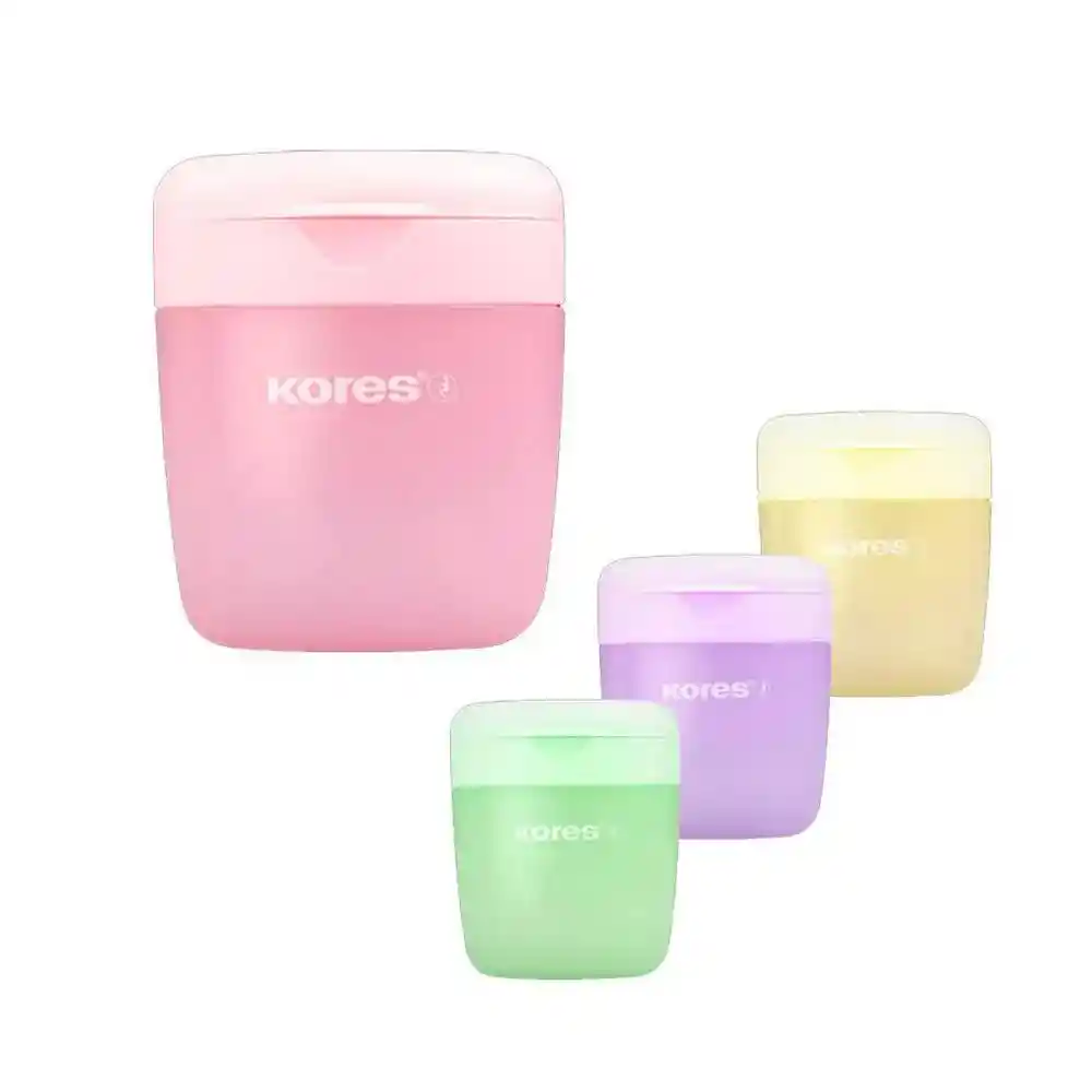 TAJA LÁPIZ DOBLE CON DEPÓSITO KORES COLORES PASTEL. DISEÑO COMPACTO, AFILADO EFICIENTE Y DEPÓSITO INCORPORADO. IDEAL PARA USO ESCOLAR Y OFICINA.