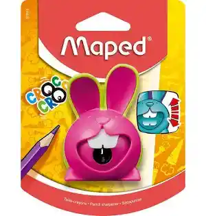 Un tajalápiz super divertido con forma de conejo y con dientes que se mueven cuando tajas tu lápiz, con 1 servicio (orificio) para tajar tus lápices de 3mm. Sacapuntas Ingeniosos Limpieza, expulsión de la mina, señal de fin de afilado… son algunas de las funciones que ilustran la gran fuerza innovadora de Maped y que facilitan el uso cotidiano de estos ingeniosos sacapuntas Sacapuntas Maped Croc Croc Innovation Divertido y original sacapuntas con depósito. Posee un innovador sistema patentado interactivo que hace que los dientes se muevan si se gira el lápiz del lado correcto durante el afilado. Disponible en 3 bonitos colores! Descubrilo! Es genial, es Maped! Nota: Se envía cualquiera de las referencias surtidas que están en las imágenes.