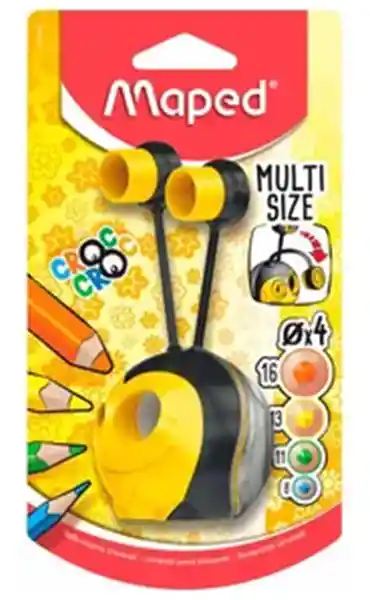 Divertido y práctico para los niños, ya que pueden hacer sus actividad escolares mientras se divierten jugando con el sacapuntas. Permite tener 4 medidas diferentes para el tajado de tus lápices y colores, dos orificios en el cuerpo y dos en sus antenas que permiten ajustar la medida.