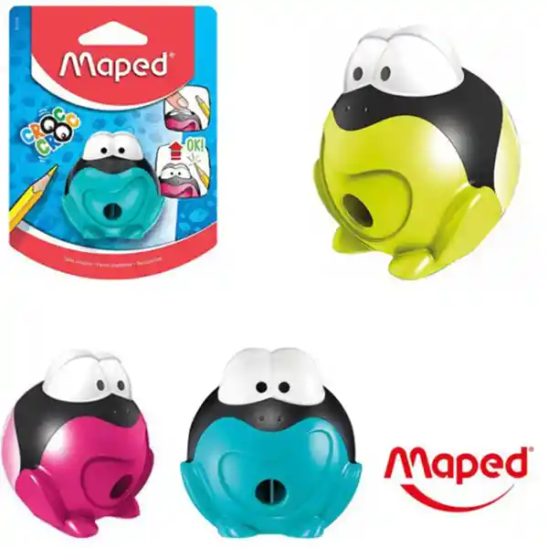 Con sistema patentado Signal Innovation, ¡Los ojos se abren o levantan cuando el lápiz está afilado y listo para usar! ¡Afilar tu lápiz es súper fácil e intuitivo con Frog Maped! - Tajalápiz con depósito - Material del exterior de plástico y tajalápiz metálico - Ideal para todos los lápices de colores de los niños y para todas sus actividades de coloración. - Embalaje 100% reciclable. Nota: Se envía cualquiera de las referencias surtidas que están en las imágenes.