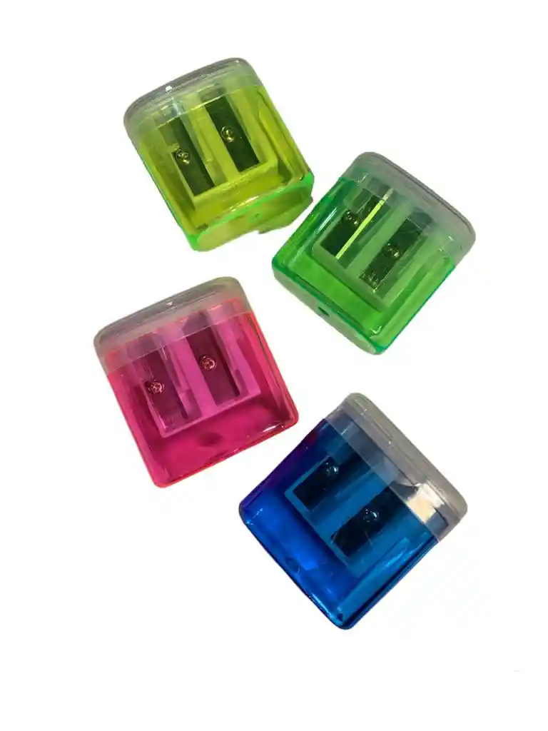 TAJALAPIZ SACAPUNTA DOBLE CON DEPOSITO, distintos colores para que escojas el que mas te guste, funciona para lapices o colores delgados y gruesos.