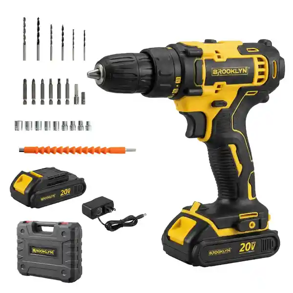 Taladro inalámbrico Brooklyn 110V, ideal para trabajos tanto profesionales como en casa. - Incluye 1 batería de 20V/1.300 mAh que te permitirán trabajar con máxima libertad, potencia y eficiencia desde el primer momento. - LARGA DURACIÓN DE BATERÍA: más de 45 minutos de uso a primera velocidad. - Taladro atornillador, diseñado para perforar madera, acero, aluminio, drywall y más... - Puedes cambiar la dirección de rotación, seleccionar entre dos tipos de marcha, ajustar la fuerza de torsión y las posiciones de torque para diferentes trabajos. - 20 voltajes y 2 velocidades variables: 2 velocidades variables (0-350 y 0-1450 RPM) con un embrague ajustable te da la versatilidad para perforar diferentes materiales y utilizar una variedad de brocas. - Incluye 24 accesorios + maletín y 1 batería: ¡Todo lo que podrías necesitar en una sola herramienta! - Cuenta con luz de trabajo en la parte frontal para ayudarte en cualquier momento. - Incluye maleta para guardar todos los accesorios en un solo lugar. - NO funciona si se encuentra enchufado. - Un excelente regalo: Incluye práctica maleta, este set es un regalo ideal para cualquier persona fanática de las manualidades, construcción o en búsqueda de ampliar su kit de herramientas. ----------------------------------------------------------------------- FICHA TÉCNICA - Taladro inalámbrico 110V +1 batería recargable - Mandril plástico - Tamaño mandril: 10mm - 1 Batería: 1,3 Ah - Voltaje batería: 20 V - Voltaje: 110V - Indicador carga de batería - Batería estándar Dewalt - 2 velocidades: 0-350 / 0-1450 rpm - Regulaciones de torque: 21+1 - Torque máximo: 35 N.m - Switch de función adelante y reversa - Tiempo de carga batería: 3 horas - Producto no funciona si es que se encuentra enchufado - Luz de trabajo LED - Protección de sobrecarga dependiente de la temperatura - Duración de batería en uso: 45 minutos (primera velocidad) - Capacidad perforación metal: 10mm - Capacidad perforación madera: 20mm - Cargador de batería voltaje: 100 - 240 V ~ 50/60 Hz - Voltaje batería: 20 V - Medidas taladro: 21.5 x 19 x 7.5 cm - Peso: 1,4 kg ----------------------------------------------------------------------- MODO DE USO 1.- Cargue la batería completamente utilizando el cargador incluido. 2.- Inserte la batería cargada en el taladro y presione el botón de encendido para su funcionamiento. 3.- Seleccione y monte la punta o herramienta deseada según el trabajo que deba realizar. 4.- Seleccione la marcha y dirección de rotación en los interruptores correspondientes. 5.- Seleccione el modo de funcionamiento y ajuste de velocidad según el trabajo que deba realizar 6.- Trabaje normalmente y apague el taladro una vez terminado el trabajo. --------------------------------------------------------------------------- QUE VIENE EN LA CAJA: - 1 Taladro inalámbrico Brooklyn 110V - 1 batería recargable - 6 brocas - 6 bits para tornillos - 1 eje flexible - 9 sockets - 1 barra de extensión - 1 barra de extensión conectante *Brooklyn® es distribuida en Colombia y Sudamérica exclusivamente por Builder Commerce SPA* ----------------------------------------------------------------------- PREGUNTAS FRECUENTES ¿Se puede usar mientras se está cargando? No, tiene un bloqueo de seguridad que no permite usarlo mientras se está cargando.