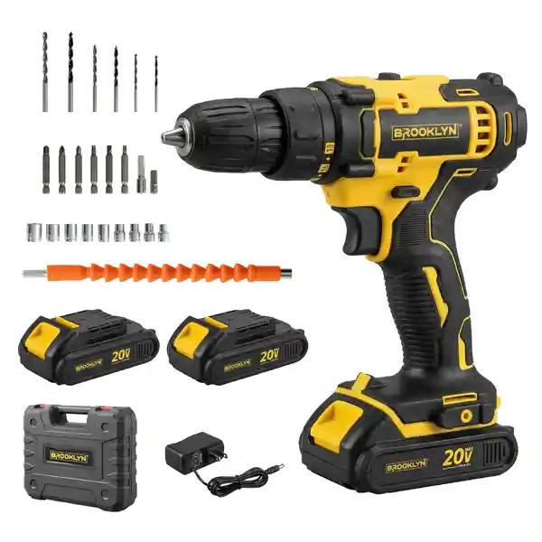Taladro inalámbrico Brooklyn 110V, ideal para trabajos tanto profesionales como en casa. - Incluye 2 baterías de 20V/1.300 mAh que te permitirán trabajar con máxima libertad, potencia y eficiencia desde el primer momento. - LARGA DURACIÓN DE BATERÍA: más de 45 minutos de uso a primera velocidad. - Taladro atornillador, diseñado para perforar madera, acero, aluminio, drywall y más... - Puedes cambiar la dirección de rotación, seleccionar entre dos tipos de marcha, ajustar la fuerza de torsión y las posiciones de torque para diferentes trabajos. - 20 voltajes y 2 velocidades variables: 2 velocidades variables (0-350 y 0-1450 RPM) con un embrague ajustable te da la versatilidad para perforar diferentes materiales y utilizar una variedad de brocas. - Incluye 24 accesorios + maletín y 2 baterías: ¡Todo lo que podrías necesitar en una sola herramienta! - Cuenta con luz de trabajo en la parte frontal para ayudarte en cualquier momento. - Incluye maleta para guardar todos los accesorios en un solo lugar. - NO funciona si se encuentra enchufado. - Un excelente regalo: Incluye práctica maleta, este set es un regalo ideal para cualquier persona fanática de las manualidades, construcción o en búsqueda de ampliar su kit de herramientas. ----------------------------------------------------------------------- FICHA TÉCNICA - Taladro inalámbrico 110V +2 baterías recargables - Mandril plástico - Tamaño mandril: 10mm - 2 Batería: 1,3 Ah - Voltaje batería: 20 V - Voltaje: 110V - Indicador carga de batería - Batería estándar Dewalt - 2 velocidades: 0-350 / 0-1450 rpm - Regulaciones de torque: 21+1 - Torque máximo: 35 N.m - Switch de función adelante y reversa - Tiempo de carga batería: 3 horas - Producto no funciona si es que se encuentra enchufado - Luz de trabajo LED - Protección de sobrecarga dependiente de la temperatura - Duración de batería en uso: 45 minutos (primera velocidad) - Capacidad perforación metal: 10mm - Capacidad perforación madera: 20mm - Cargador de batería voltaje: 100 - 240 V ~ 50/60 Hz - Voltaje batería: 20 V - Medidas taladro: 21.5 x 19 x 7.5 cm - Peso: 1,4 kg ----------------------------------------------------------------------- MODO DE USO 1.- Cargue la batería completamente utilizando el cargador incluido. 2.- Inserte la batería cargada en el taladro y presione el botón de encendido para su funcionamiento. 3.- Seleccione y monte la punta o herramienta deseada según el trabajo que deba realizar. 4.- Seleccione la marcha y dirección de rotación en los interruptores correspondientes. 5.- Seleccione el modo de funcionamiento y ajuste de velocidad según el trabajo que deba realizar 6.- Trabaje normalmente y apague el taladro una vez terminado el trabajo. --------------------------------------------------------------------------- QUE VIENE EN LA CAJA: - 1 Taladro inalámbrico Brooklyn 110V - 2 baterías recargables - 6 brocas - 6 bits para tornillos - 1 eje flexible - 9 sockets - 1 barra de extensión - 1 barra de extensión conectante *Brooklyn® es distribuida en Colombia y Sudamérica exclusivamente por Builder Commerce SPA* ----------------------------------------------------------------------- PREGUNTAS FRECUENTES ¿Se puede usar mientras se está cargando? No, tiene un bloqueo de seguridad que no permite usarlo mientras se está cargando.