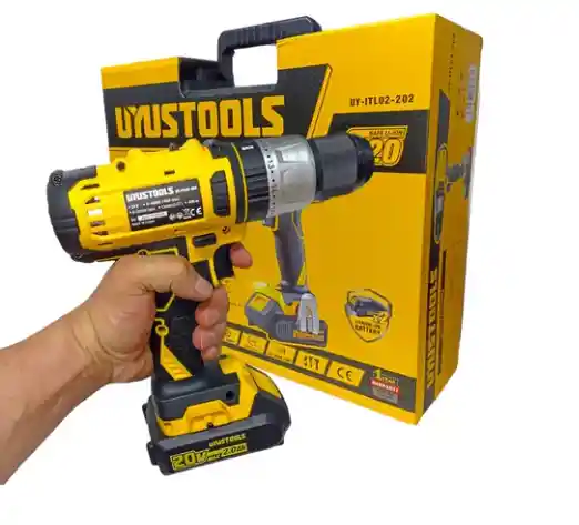 CARACTERISTICAS • Velocidad: 0 - 400 / 0-1400 RPM • Frecuencia de Impacto: 0 - 22000 BPM. • Torque máximo: 45 N.m • Voltaje: 20V (Li -ion) • Mandril: 13 mm • Capacidad de Perforación: Hormigón 22mm - Acero 13 mm - Madera 28 mm • Uso: profesional. • Marca UYUSTOOLS