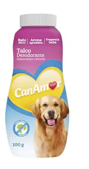 TALCO CAN AMOR DOG DESODORANTE es un talco desodorante ideal para eliminar hongos y bacterias además garantiza la higiene del animal entre baños. Dejando un delicioso aroma a bebe en el pelaje de tu mascota.