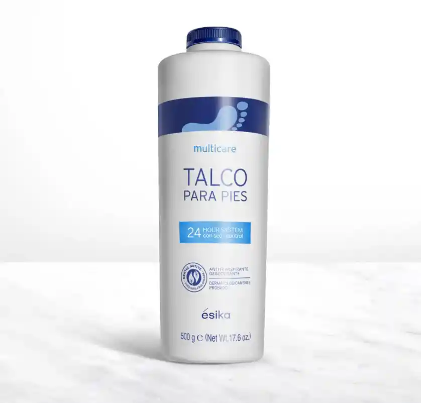 Descripción Talco para pies Multicare. Controla el exceso de transpiración, contiene menthol active que brinda frescura prolongada y está dermatológicamente probado. Capacidad: 500 gr. NSOC00354-20CO. Beneficios • Controla el exceso de transpiración. • Menthol active frescura prolongada. • Dermatológicamente probado. Ingredientes Su fórmula contiene Undecilenato de zinc y Menthol: Repara el aspecto suave y uniformde la piel de tus pies, mientras los invade de frescura y confort para que lo sientas descansados. ¿Cómo usarlo? Aplicar el producto directamente en los pies, especialmente entre los dedos y esparcirlo. También se puede aplicar en el interior del calzado. *No usar/aplicar en bebés y niños menores de 6 años.