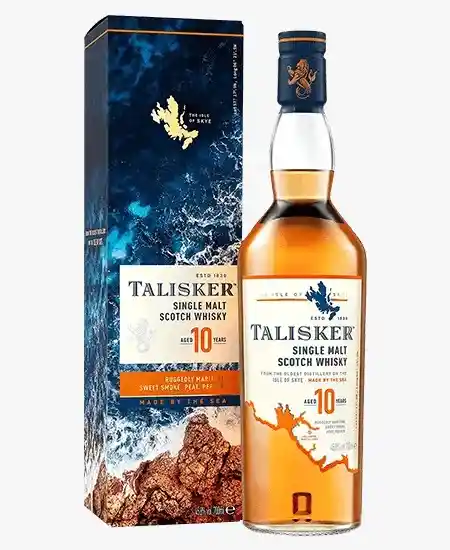 El Talisker 700 ml es un whisky escocés Single Malt originario de la Isla de Skye, reconocido por su carácter marítimo y robusto. Presenta un perfil intenso con notas ahumadas de turba, pimienta negra y un distintivo toque salino, equilibrado con matices suaves de malta y un final largo y especiado.