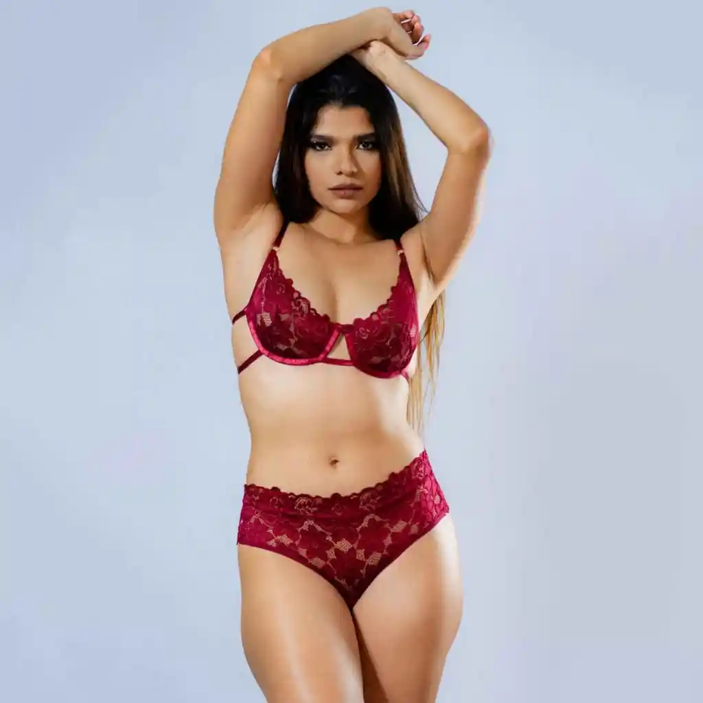 Si deseas la mayor comodidad ante cualquier situación de la vida cotidiana el Conjunto de lencería DORA Vinotinto es el indicado. Hemos fusionado la sensualidad del panty tipo CACHETERO TIRO ALTO y la versatilidad que te ofrece su hermoso brasier de encaje con varillas y cargaderas ajustables para que se adapte perfectamente a tu cuerpo. Todos los herrajes de este conjunto tienen baño de ORO. Tú que eres fanática de los conjuntos de encaje con pantys un poco más grandes, hemos diseñado este set completamente para ti.