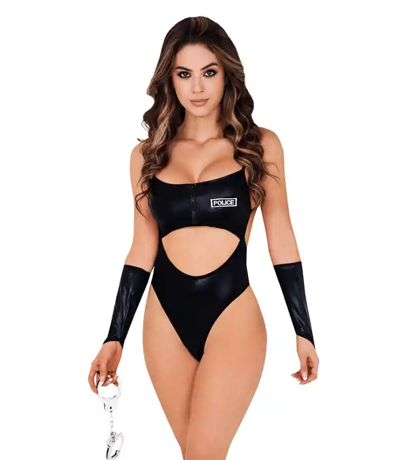 ¡Haz cumplir las reglas con este sexy disfraz de policía! Atrapa a los culpables luciendo poderosa con este body, con una abertura sexy en la cintura y una placa policial que te hará sentir en control. ¡Completa el look con unas esposas para un toque extra de autoridad! Características: - Materiales: 94% Poliéster, 6% Elastómero y herrajes metálicos. - Contenido: Incluye body y guantes. NO incluye esposas. - Tallas: S/M y M/L Cuidados: Lavar con agua fría, a mano, por separado o en el proceso de prendas delicadas, no usar desinfectantes, ni plancha, y secar a la sombra.