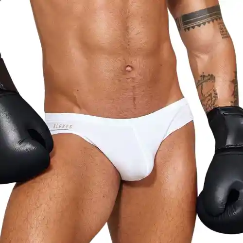Un calzoncillo de cobertura mínima pero completa en textil lycra algodón ¡Te encantará la forma en que se ve tu pene y cómo se siente en tu cuerpo, y es lo suficientemente versátil como para usarlo en cualquier nivel o tipo de actividad! Hombre Bikini Tanga WE ARE BLOKES. Elástico resistente, se adapta completamente a la silueta dándole una forma anatómica al pene con una bolsa de realce en genitales que aumenta ópticamente el volumen. Laterales de 2.5 cms de ancho.