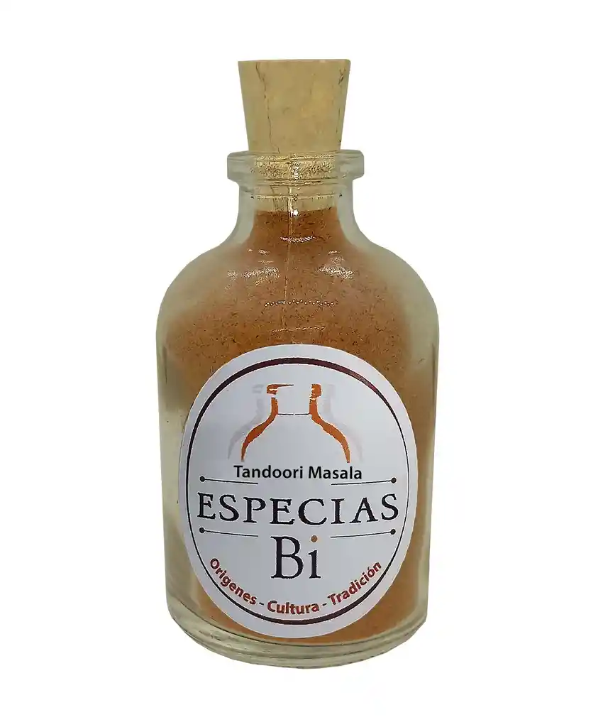 Tandoori 40g (cilantro en pepa (coriandro), comino, paprika, ajo, jengibre, cardamomo, canela, pimienta negra, clavos, nuez moscada, fenogreco) El Tandoori Masala es una mezcla tradicional de especias de la cocina india, famosa por aportar un sabor exótico, aromático y ligeramente picante a las preparaciones. Su color característico y su intensidad hacen que sea ideal para dar un toque auténtico a tus platos. Presentado en un frasco de vidrio, que conserva todo su aroma y frescura. Beneficios para la salud: Contiene especias con propiedades digestivas y antiinflamatorias. Rico en antioxidantes naturales, que apoyan el bienestar general. Puede contribuir a mejorar la circulación y el metabolismo. Aporta vitalidad y energía gracias a la combinación de hierbas y especias. Usos sugeridos: Ideal para preparar el clásico pollo tandoori y carnes al horno o a la parrilla. Perfecto en guisos, sopas, currys y salsas indias. Puede usarse como marinado mezclado con yogur o aceite. Excelente para dar un toque exótico a vegetales, arroces y legumbres. Presentación en frasco de vidrio reutilizable, práctico, elegante y ecológico.