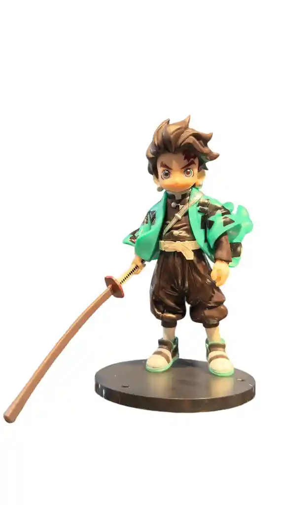 Tanjiro Kamado es el protagonista principal de Kimetsu no Yaiba. Es un cazador de Demonios cuyo principal objetivo es encontrar al responsable de haber matado a su familia y convertido a su hermana Nezuko en una Demonio[5] y luego juró derrotar a Muzan Kibutsuji, el Rey de los Demonios, para evitar que otros sufran el mismo destino que él. Antes de convertirse en un Cazador de Demonios, Tanjiro era un quemador de carbón antes de que Muzan matara a toda su familia mientras que su hermana menor, Nezuko, se convirtió en una demonio. Figura 15 cm empacado en blister
