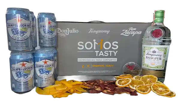 1 Tanqueray Ginebra Rangpur Botella De 750 Ml + 7 San Pellegrino Aguas Tónica + 2 G De Bayas De Enebro + 2 G De Pimienta De Jamaica + 5 G De Cardamomo + 2 G De Pimienta Rosada + 20 G De Fresa Deshidratada + 20 G De Naranja Deshidratada + 20 G De Mango Deshidratado + 1 Recetario. Kit Para Preparar 15 Cócteles .