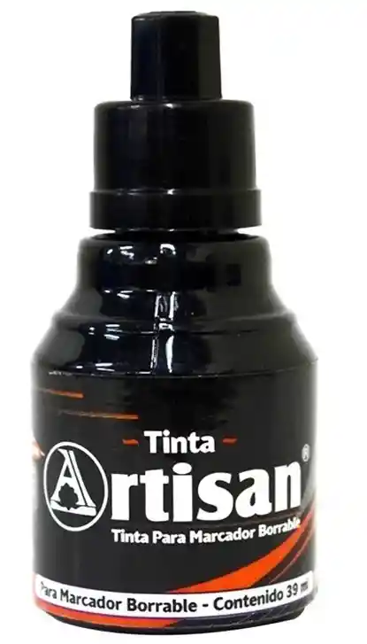 La tinta Artesan para marcador borrable es un producto de recarga diseñado para prolongar la vida útil de los marcadores de la misma línea, permitiendo escribir sobre superficies no porosas como tableros acrílicos, porcelanizados y vidrios, y borrarse fácilmente en seco.