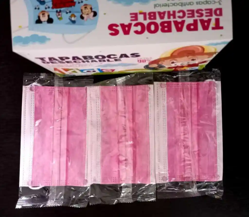 Tapabocas quirúrgico triplicapa infantiles color Rosado caja x 50 unidades