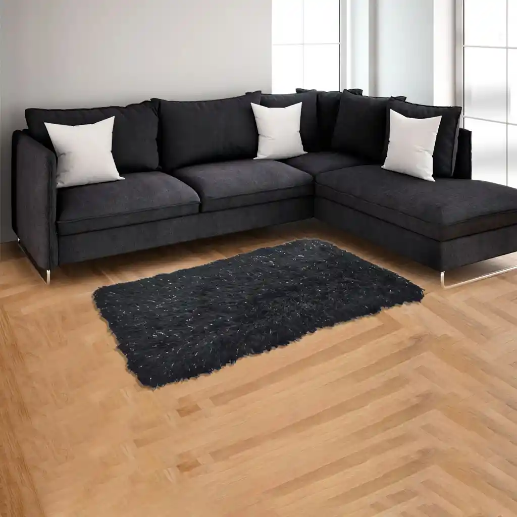 Hermosa alfombra elaborada con delicadas fibras de poliéster e hilos metálicos. Peso 2,1 kg Dimensiones 110 × 13 × 17 cm Medidas del producto 110 x 60 x 3 cms Composición 100% Poliéster