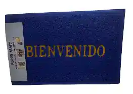 Tapete para entrada "Bienvenido" color azul rey con letras doradas en relieve. Superficie de fibra rizada, base antideslizante. Moderno y elegante para cualquier entrada. 57cm x 37cm