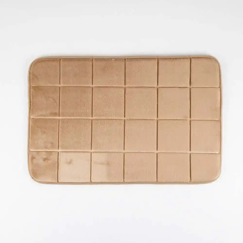 Tapete de baño en color taupe, fabricado en poliéster con dimensiones de 60x40 cm, suave.